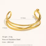 Made from 316L stainless steel and coated with a rich 18K gold plating, this bracelet offers durability and shine that lasts. It is waterproof and hypoallergenic, ensuring comfortable wear even for sensitive skin. Measuring approximately 2.4 inches (61.4mm) in diameter, it fits comfortably on most wrists while allowing for easy adjustment thanks to its open cuff style. The hollow skeleton design keeps it lightweight at just 25 grams, so you can wear it all day without any discomfort.