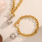 Crafted from 316L stainless steel and coated with a luxurious 18K gold plating, both the necklace and bracelet are waterproof and hypoallergenic. That means you can wear them comfortably all day without worrying about tarnish, fading, or skin irritation. The baroque pendant—each piece intentionally unique—adds a touch of organic elegance, while the polished gold-tone finish enhances its rich, modern appeal. Whether you wear the pieces together or separately, they add a statement of understated luxury.