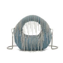 Use our battle tested marketing materials for Luxury Denim Rhinestone Evening Clutch with Tassel & Chain Strap