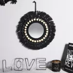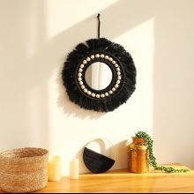 Add a warm, stylish touch to your space with this Black Macrame Round Wall Mirror featuring wooden bead accents. The perfect blend of natural texture and modern charm, this mirror brings an effortlessly cool boho vibe into any room. Whether you're designing a calming bedroom retreat, enhancing a minimalist hallway, or adding flair to a cozy living room corner, this piece makes a stunning focal point on any wall.