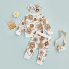 Let your baby girl bloom in comfort and charm with this delightful Baby Girl Fall Outfit Set. Designed for those crisp autumn days and cozy spring mornings, this three-piece set features a long sleeve round neck pullover adorned with a beautiful floral print, elastic waist trousers, and a matching headband to complete the look. Whether it's a casual day out or a photo-ready moment at home, your little one will be dressed to impress — all while staying snug and stylish. Crafted from a soft cotton blend, the fabric feels gentle on your baby’s skin while offering breathability and flexibility for playful movement. The floral pullover adds a pop of sweet personality, and the stretchy waistband on the pants ensures a comfy, fuss-free fit. The coordinating headband brings the entire outfit together with an adorable final touch that moms and babies alike will love.Key Features