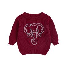Baby Girl Knit Pullover Sweater with Bulldog or Elephant Embroidery