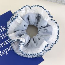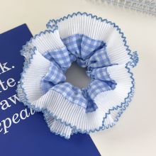Use our battle tested marketing materials for Blue Lace Ruffle Scrunchie with Plaid Pattern