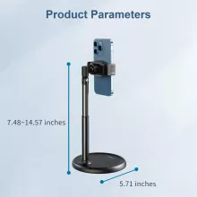 Elevate your filming, streaming, and browsing experience with this adjustable phone holder stand designed for 4 to 7-inch devices. Whether you're creating content, attending virtual meetings, following a tutorial, or simply watching your favorite shows, this stand offers a stable, flexible, and stylish solution for hands-free phone use. Its smart, adjustable design allows you to fine-tune both height and angle to get the perfect shot or viewing position every time.