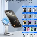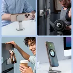 What truly sets this magnetic stand apart is its thoughtful design and unmatched portability. Despite its slim profile, it delivers a rock-solid grip thanks to powerful internal magnets. Its aluminum construction adds both durability and elegance, while the folding mechanism makes it one of the most compact phone stands available. Plus, the added option to mount it on walls or smooth surfaces gives it a functional edge over bulkier stands.