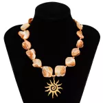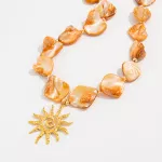 Add a touch of effortless charm to your summer wardrobe with this boho-inspired sun pendant necklace. Featuring a unique irregular scallop chain and radiant sun charm, this stunning piece is the perfect blend of free-spirited style and modern sophistication. Whether you're heading to the beach, strolling through a summer market, or dancing at a festival, this necklace elevates your look with a soft, statement-making glow.