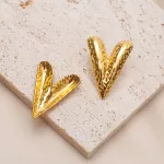 Let your personality shine through with these cute and trendy gold heart stud earrings, designed to bring charm and elegance to your daily style. With a soft heart silhouette and a unique irregular surface, these earrings strike the perfect balance between playful and refined. Their radiant gold color catches the light just right, giving your outfit a polished finish without going over the top.