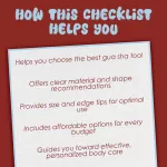 This easy-to-follow checklist covers everything you need to know before purchasing or using gua sha tools for body, from material selection to shape, size, and even budget-friendly options. If you’ve ever felt overwhelmed by the options out there, this guide will streamline the process and help you make the right choice. Get ready to enjoy a customized body massage experience that targets your needs and leaves you feeling relaxed and rejuvenated!