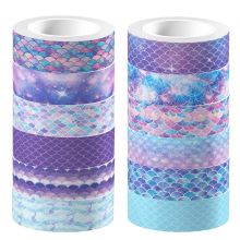 - Set of 12 decorative washi tapes with musical, vintage, and cosmic designs