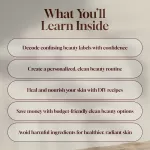 - Step-by-step instructions on how to decode beauty labels and avoid harmful ingredients like the Dirty Dozen.