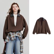 Use our battle tested marketing materials for Chic Spliced Lapel Deep V Neck Cotton Pullover Sweatshirt for Women