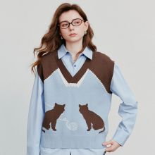 Use our battle tested marketing materials for Women’s Cat Jacquard V-Neck Sleeveless Pullover Sweater