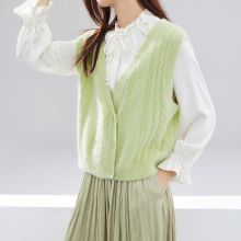 Use our battle tested marketing materials for Green Sleeveless Vest WomenPreppy Style Casual Loose V Neck Double Breasted Coats