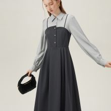 Use our battle tested marketing materials for Grey Blue Pleated A-Line Puff Sleeve Polo Neck Dress