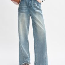 Use our battle tested marketing materials for Plus Size Retro Washed Blue Straight Jeans - High Waist Wide Leg Pants
