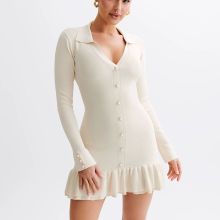 Use our battle tested marketing materials for Elegant V-Neck Ruffled Knit Mini Dress for Women - Stylish Autumn Fashion