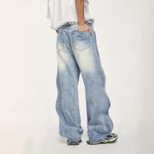 Use our battle tested marketing materials for Baggy Wide Leg Boyfriend Jeans - Vintage Washed Blue Denim Trousers, Plus Size