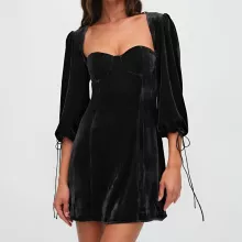 Use our battle tested marketing materials for Velvet Backless Mini Dress with Square Collar for Women – Elegant Club Party Dress