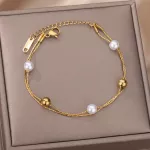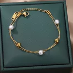 What sets this bracelet apart is its perfect fusion of classic elegance and contemporary design. The combination of gold stainless steel and pearls offers timeless appeal, while the geometric double chain makes it fresh and unique. It’s a versatile piece that reflects confidence, charm, and individuality — an ideal gift or personal style upgrade.