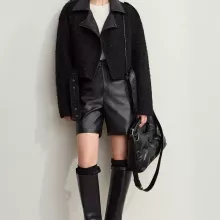 Use our battle tested marketing materials for Women's Cropped Woolen Coat with Leather Spliced Details and Belt