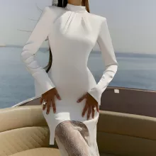 Use our battle tested marketing materials for Elegant White Slim Fit 2-Piece Skirt Set for Women – Lace Midi Skirt & Long Sleeve Top