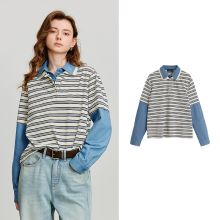Use our battle tested marketing materials for Autumn Women's Striped Patchwork Denim Casual Pullover Hoodie