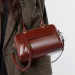 This handbag is more than just an accessory—it’s a statement of effortless confidence. The soft texture of real cowhide gives it a luxurious edge, while the sleek structure and geometric shape keep it modern and stylish. It fits all your daily must-haves and elevates any outfit with its understated elegance.
