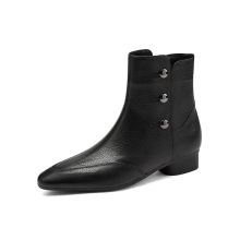 Discover the perfect blend of style and comfort with these genuine leather ankle boots designed for modern women. Featuring a pointed toe and a sturdy chunky low heel, these boots bring sophistication to your autumn and winter wardrobe. The sleek zipper closure adds ease and convenience, making them your go-to choice for everyday wear or special occasions. Crafted with premium sheepskin leather on the outside and soft pigskin and fleece lining inside, these boots provide a cozy feel while keeping your feet warm on chilly days. The durable rubber sole offers reliable traction, ensuring steady steps wherever you go. Available in classic black and rich dark brown, these boots fit true to size and pair effortlessly with dresses, trousers, or jeans for an office-ready or casual look.