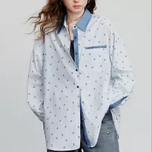 This blouse is your go-to piece for seasonal style with personality. The subtle stripe design paired with the statement bowknot makes it stand out in just the right way. It's ideal for cooler months — pair it with high-waisted trousers, sleek denim, or a midi skirt for a variety of chic looks. The denim patchwork adds a trendy, casual twist that takes it beyond the basics and into something truly memorable. Whether you're dressing it up for a day at work or wearing it casually on a weekend stroll, this blouse strikes the perfect balance between sophistication and ease.Step Into the Season with Confidence