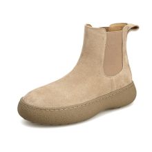 Use our battle tested marketing materials for Cow Suede Chelsea Boots – Round Toe, Slip-On, Thick Heel Ankle Booties