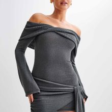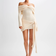 Use our battle tested marketing materials for Sassy Off-Shoulder Knit Mini Dress - Stylish Draped Long Sleeve Dress