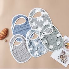 5-Piece Soft Muslin Baby Bib & Burp Cloth Set – Bamboo Cotton, Breathable & Cute