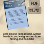 Natural fiber furniture—whether it’s rattan, wicker, bamboo, or seagrass—adds warmth, charm, and texture to any living space. But to keep these eco-friendly pieces looking their best, they require the right kind of care. The Natural Fiber Furniture Care Checklist is a practical, easy-to-follow digital download designed to guide you through every step of proper maintenance. With clear instructions and simple habits, this checklist helps you protect your investment and ensure your furniture stays strong, stylish, and timeless.