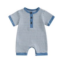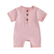 Use our battle tested marketing materials for Newborn Baby Striped Short Sleeve Romper with Button Front Playsuit