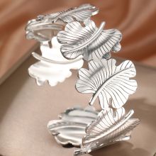 Use our battle tested marketing materials for Stainless Steel Leaf-Shaped Open Bangle - Unisex Wrist Accessory