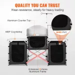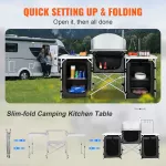 Transform any outdoor adventure into a gourmet experience with this folding camping kitchen table. Designed for convenience, durability, and style, it’s the perfect companion for campers, RV travelers, backyard chefs, and picnic lovers. Whether you’re grilling by the beach, preparing breakfast in the mountains, or hosting a backyard BBQ, this table gives you a stable, organized, and efficient cooking space wherever you go.Built for Durability & Easy Setup