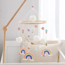 Use our battle tested marketing materials for Wooden Baby Crib Mobile with Musical Rattle, Crochet Rainbow & Projection Light