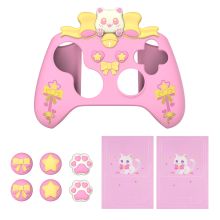 Bring a touch of cuteness to your gaming setup with the Sweetheart Kitty Silicone Cover for Xbox Series X & S controllers. Designed with playful cat-inspired elements, star wands on the grips, heart-shaped buttons, and a jingling cat above the controller logo, this cover adds a delightful, whimsical aesthetic while maintaining full functionality. The themed back stickers complete the adorable look, making your controller truly stand out.