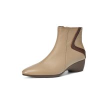Upgrade your wardrobe with these elegant ankle boots designed to combine fashion and functionality. With a classic round toe and a comfortable square high heel, these boots are perfect for adding a touch of sophistication to any outfit. The genuine cow leather upper and soft short plush lining ensure warmth and durability, keeping your feet cozy during chilly days. Designed with a sleek zipper, these boots are easy to slip on and off, offering convenience without compromising style. These boots are ideal for both casual and office wear, making them a versatile choice for women who want to look polished while staying comfortable. The sturdy rubber outsole provides reliable traction, making them suitable for city streets, office floors, or evening outings. Their high-quality materials and handmade construction make them a special addition to any shoe collection.Key Features