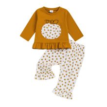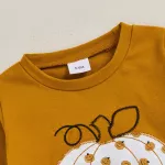 Whether it’s Halloween celebrations, fall photoshoots, playdates, birthday parties, or just a cozy day out, this outfit is made to stand out. The festive pumpkin print embroidery adds a playful seasonal touch, while the casual design makes it suitable for daily wear throughout autumn. The elastic waistband ensures quick dressing and undressing—perfect for busy parents.Product Features