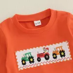 Dress your little one in style this season with this charming 2-piece fall outfit set. Perfectly designed for boys from newborn to 3 years old, this set includes a cozy long sleeve top with a playful farm car embroidery and matching striped pants. Made with soft, breathable fabrics, it’s gentle on delicate skin while offering the comfort your baby needs for everyday play, outings, or family photos.Product Features