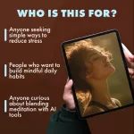 - Chapter 4: Deepening Your Practice — integrating mindfulness into work, sleep, and stress management, plus how AI can act as your meditation partner.