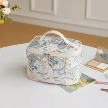 Use our battle tested marketing materials for Blue Floral Makeup Bag for Women – Large Capacity Double Zipper Cosmetic Organizer