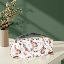 Crafted from high-quality synthetic fiber, this diaper bag is durable, lightweight, and easy to clean. Measuring approximately 11–14 inches in length, 7.5 inches in width, and 2 inches in height, it provides a compact yet spacious design that can comfortably hold diapers, bottles, toys, and personal items. The bag features a secure hasp closure to keep your belongings safe, while the stylish print adds a touch of personality. With stroller straps included, it easily attaches to most strollers, making hands-free travel simple and convenient.
