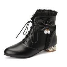 Use our battle tested marketing materials for Sweet Butterfly Knot Ankle Boots with Block Heels and Lace-Up Design