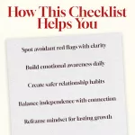 This digital checklist is your compassionate guide to understanding avoidant attachment style traits and creating healthier patterns. Whether you’re using it for personal healing, in relationships, or alongside therapy, it’s a tool designed to empower change. Download instantly and start your journey toward more connected, fulfilling relationships today.Would you like me to also write a shorter “Etsy-style” version (about 120–150 words) that you could use in product previews, in addition to this long-form version?