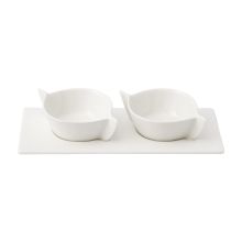 Use our battle tested marketing materials for Elegant White Porcelain Snack Plate with Two Compartments for Serving