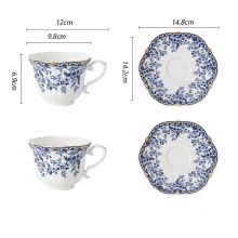 Use our battle tested marketing materials for Elegant Blue & White Ceramic Coffee Cup with Saucer – English Style Mug