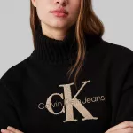 This turtleneck sweater is crafted with a thoughtful mix of fabrics that combine durability with softness. The black base is elevated with a stylish print, adding a subtle modern touch that stands out without being overpowering. Its long sleeves provide coverage on chilly days, while the turtleneck design ensures you stay cozy yet fashionable.- Brand: Calvin Klein Jeans