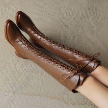 Use our battle tested marketing materials for Women's Genuine Leather Lace-Up Knee High Knight Boots - 5cm Heel, Side Zip